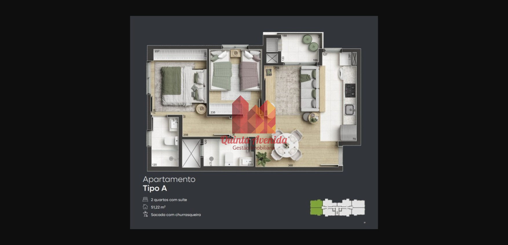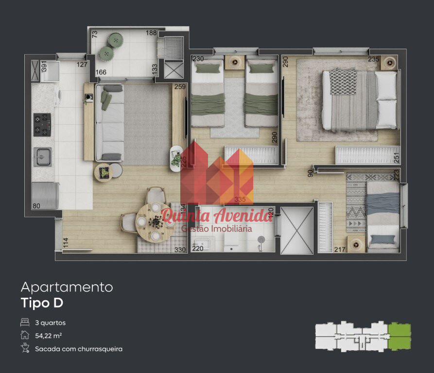 Apartamentos assim são raros e a procura é alta. Garanta sua unidade antes que acabem! Entre em contato agora com a Imobiliária Quinta Avenida e converse com nossos corretores especializados. Agende sua visita e descubra seu novo lar.