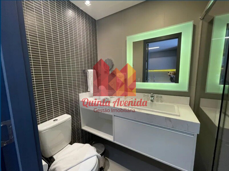 - Banheiro com armários planejados e box blindex.