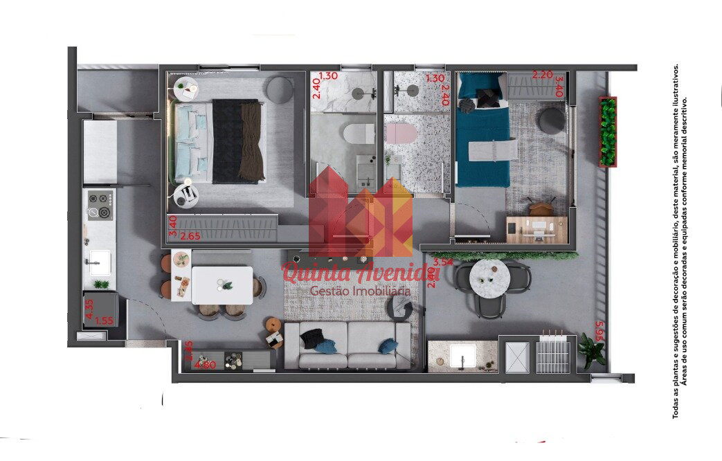 Os apartamentos contarão com:
