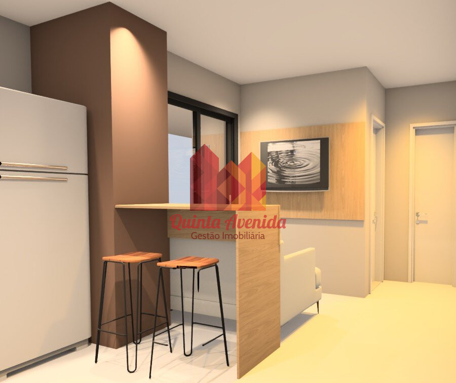 - Sala conjugada com cozinha e área de serviço;