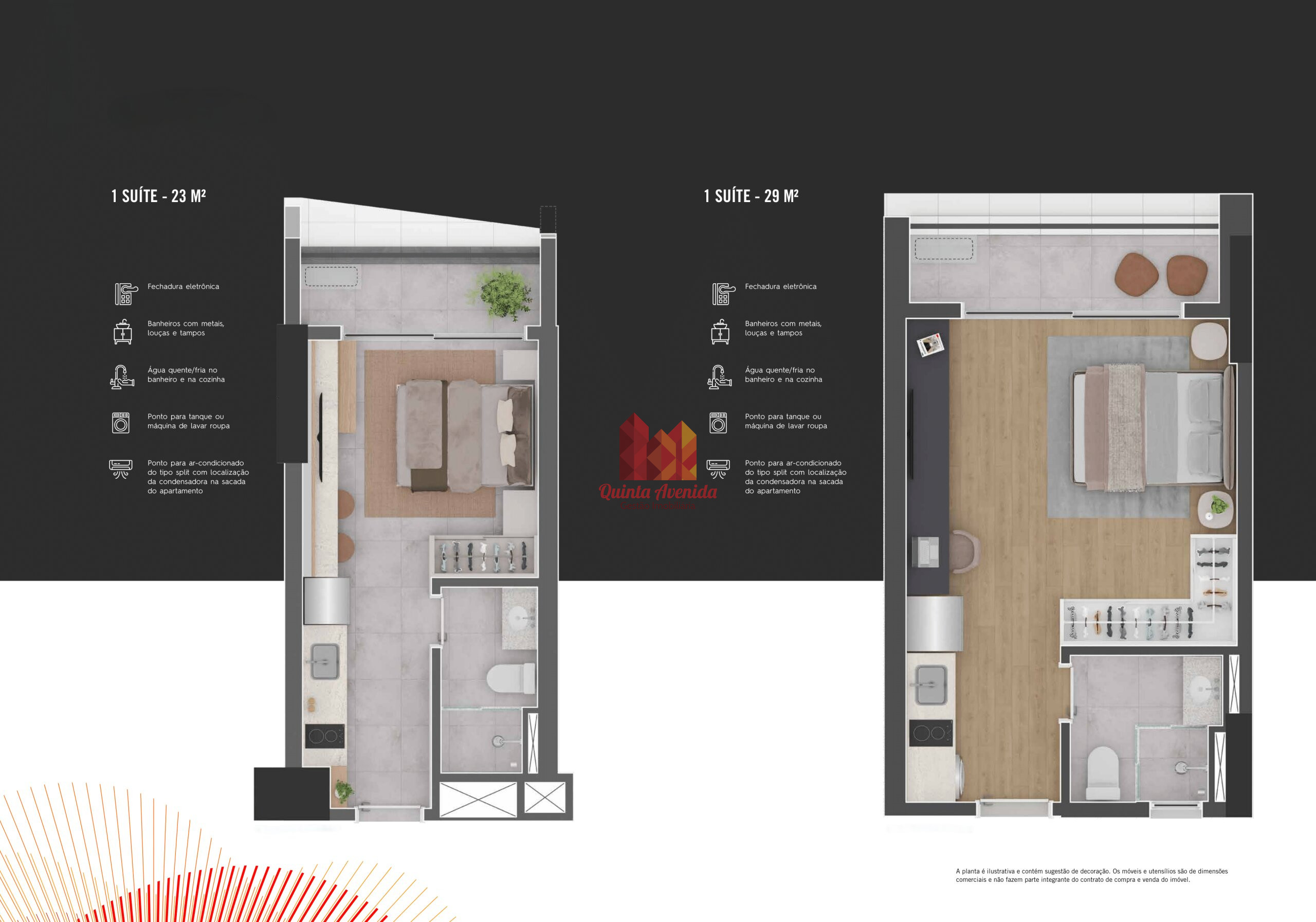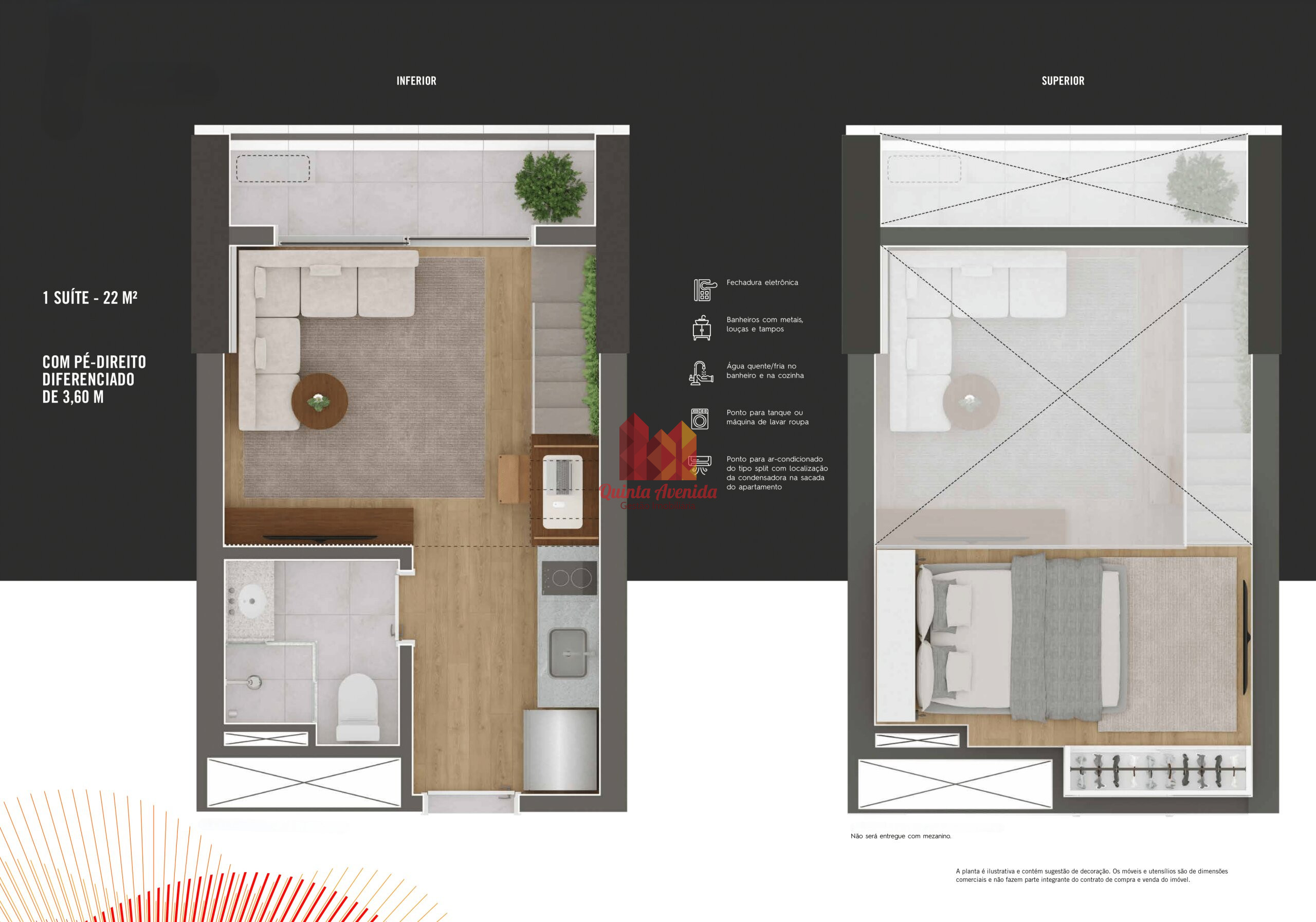 - Algumas unidades terão pé-direito duplo, com possibilidade de tornar duplex