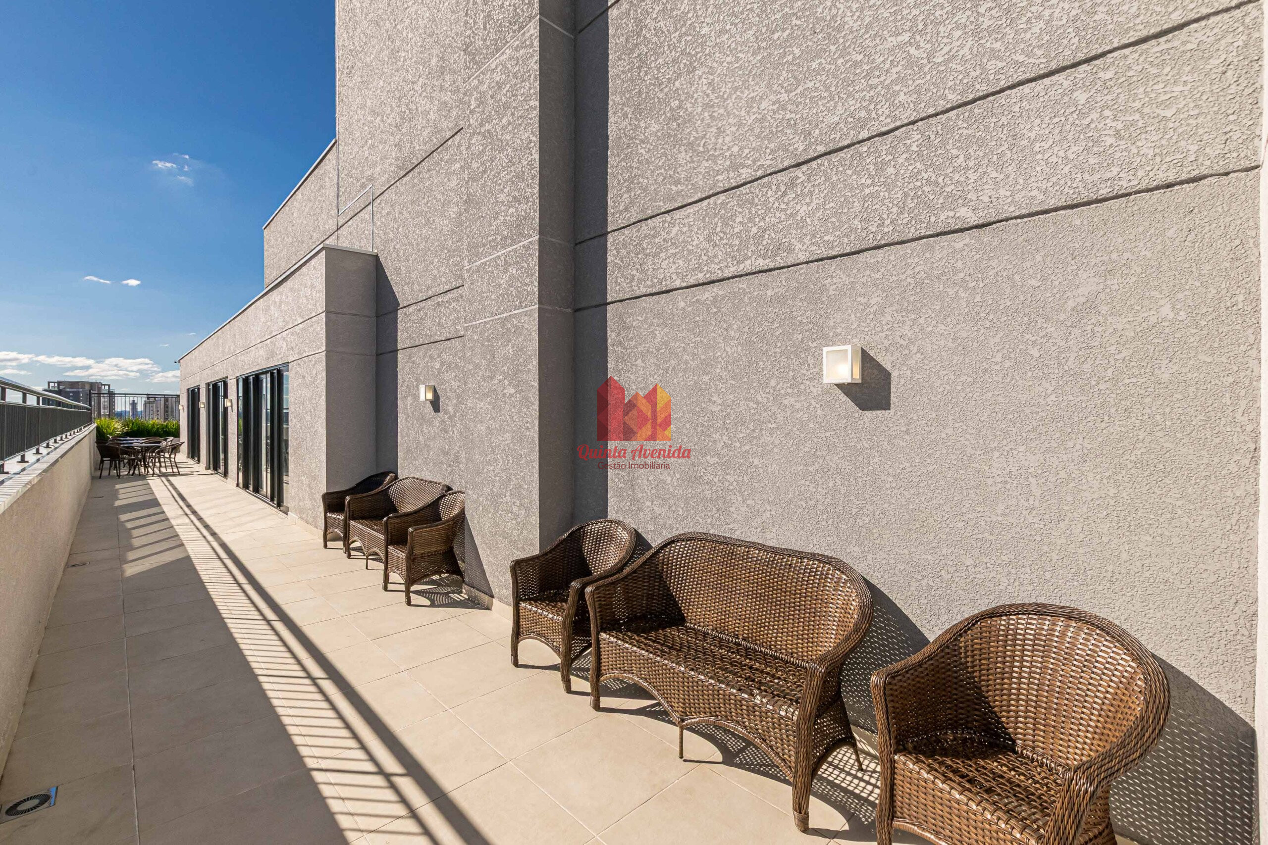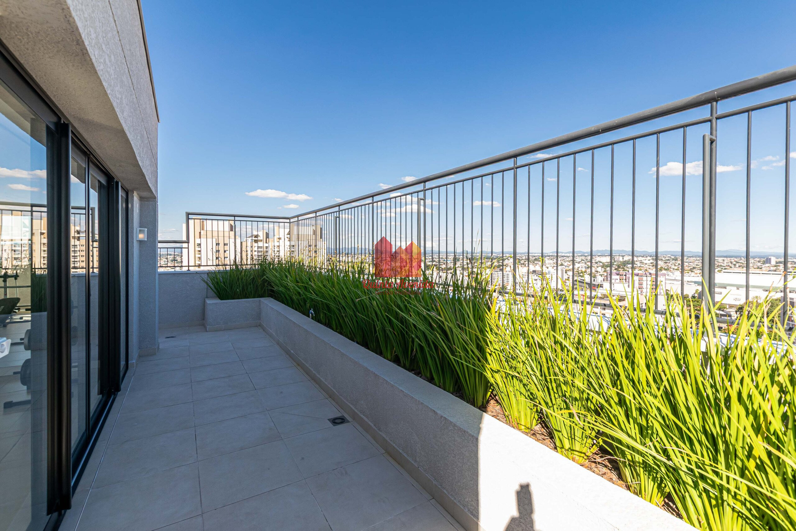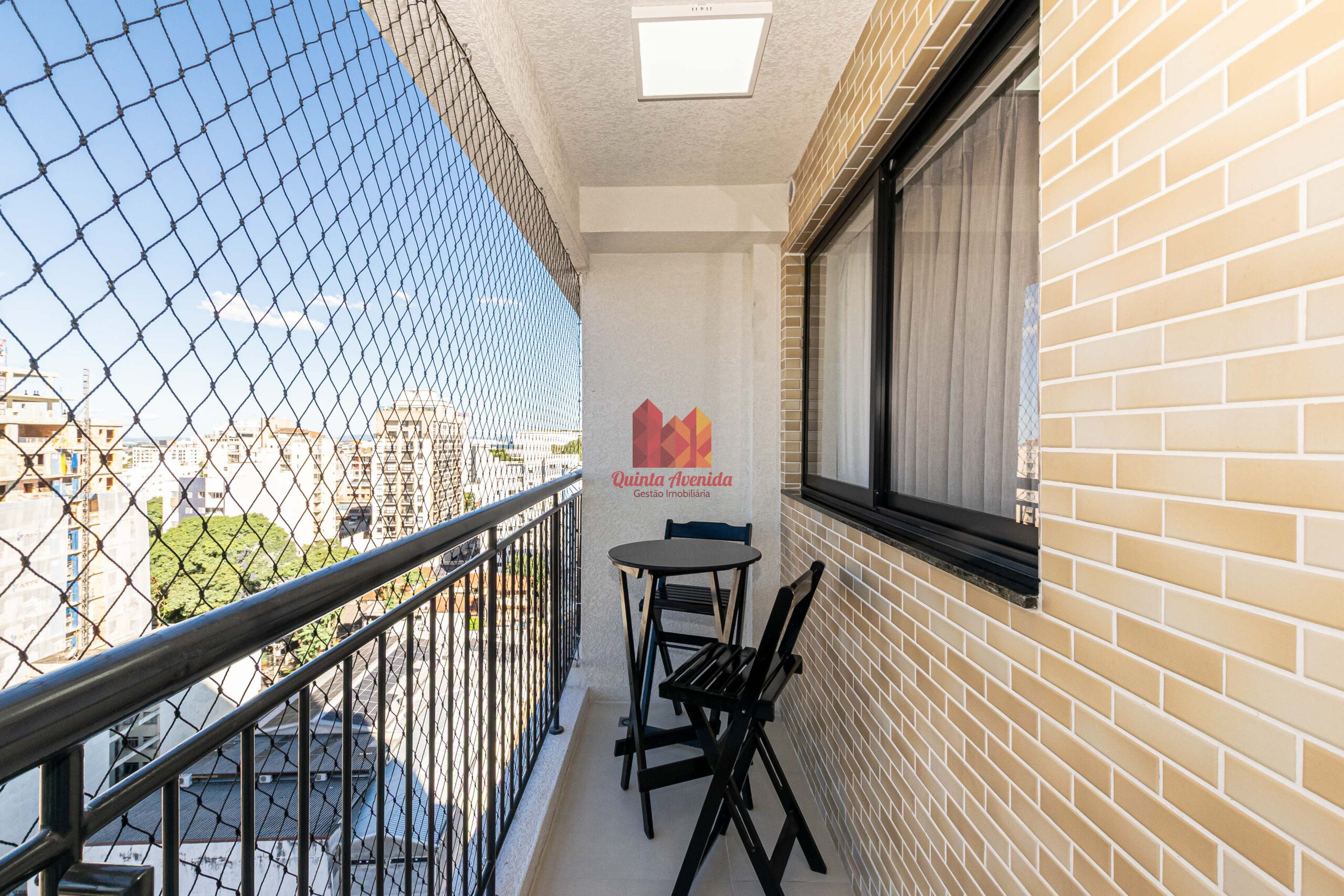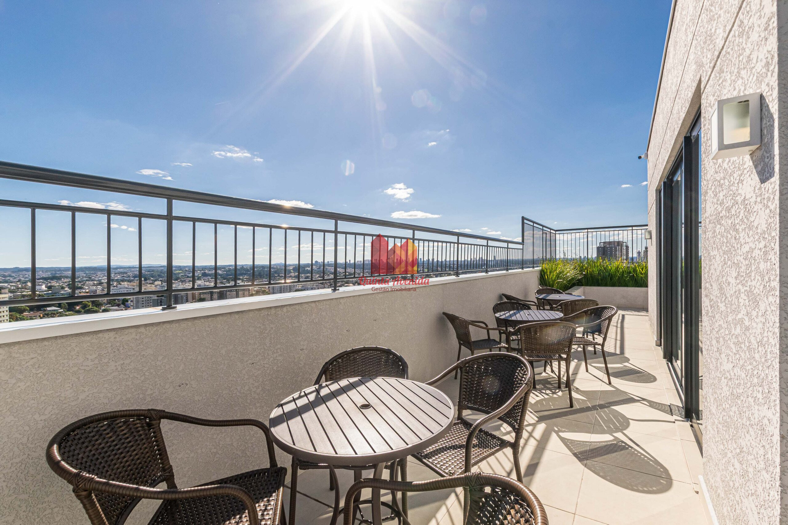 - Sacada com mesa e cadeiras, e ponto elétrico para grill.