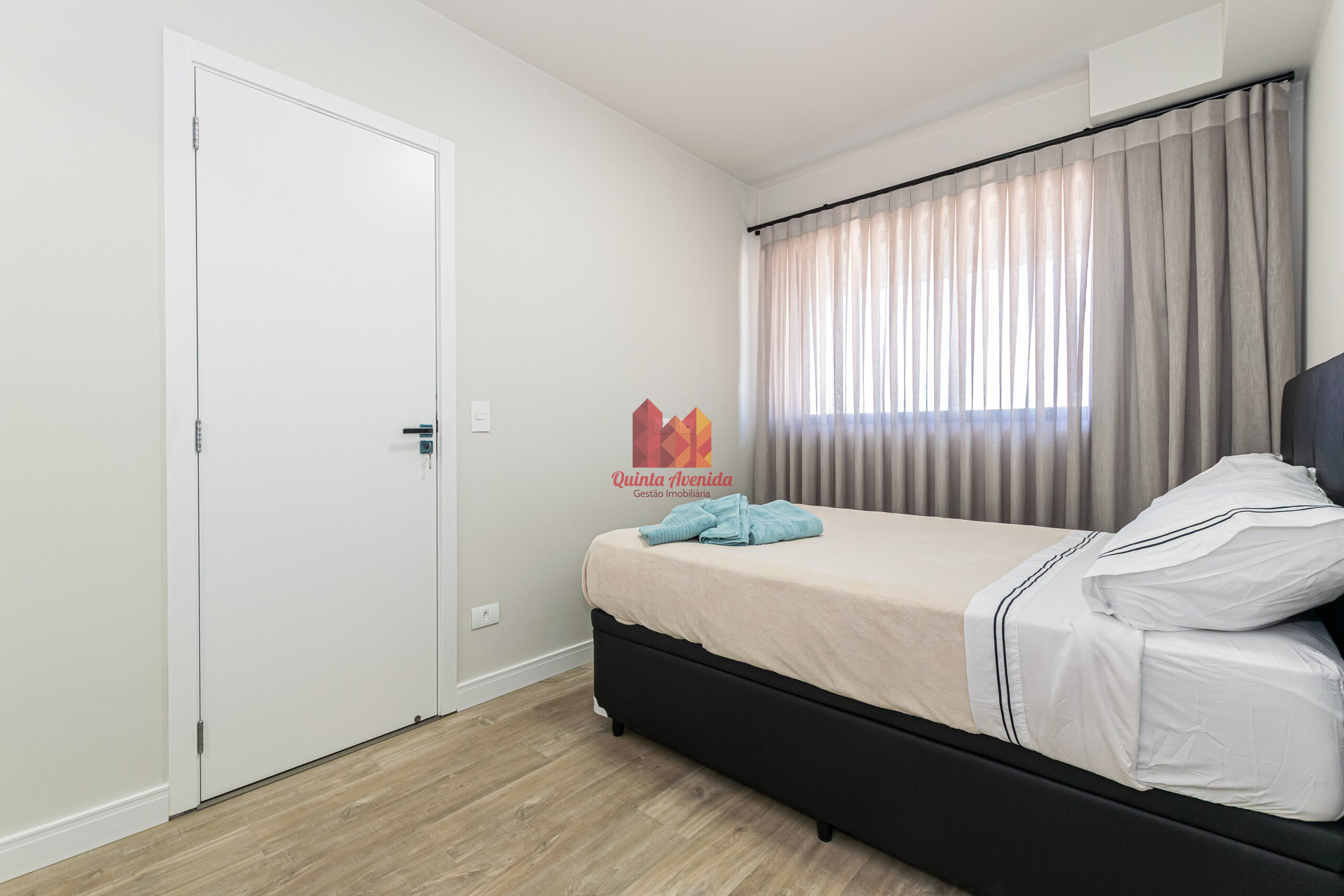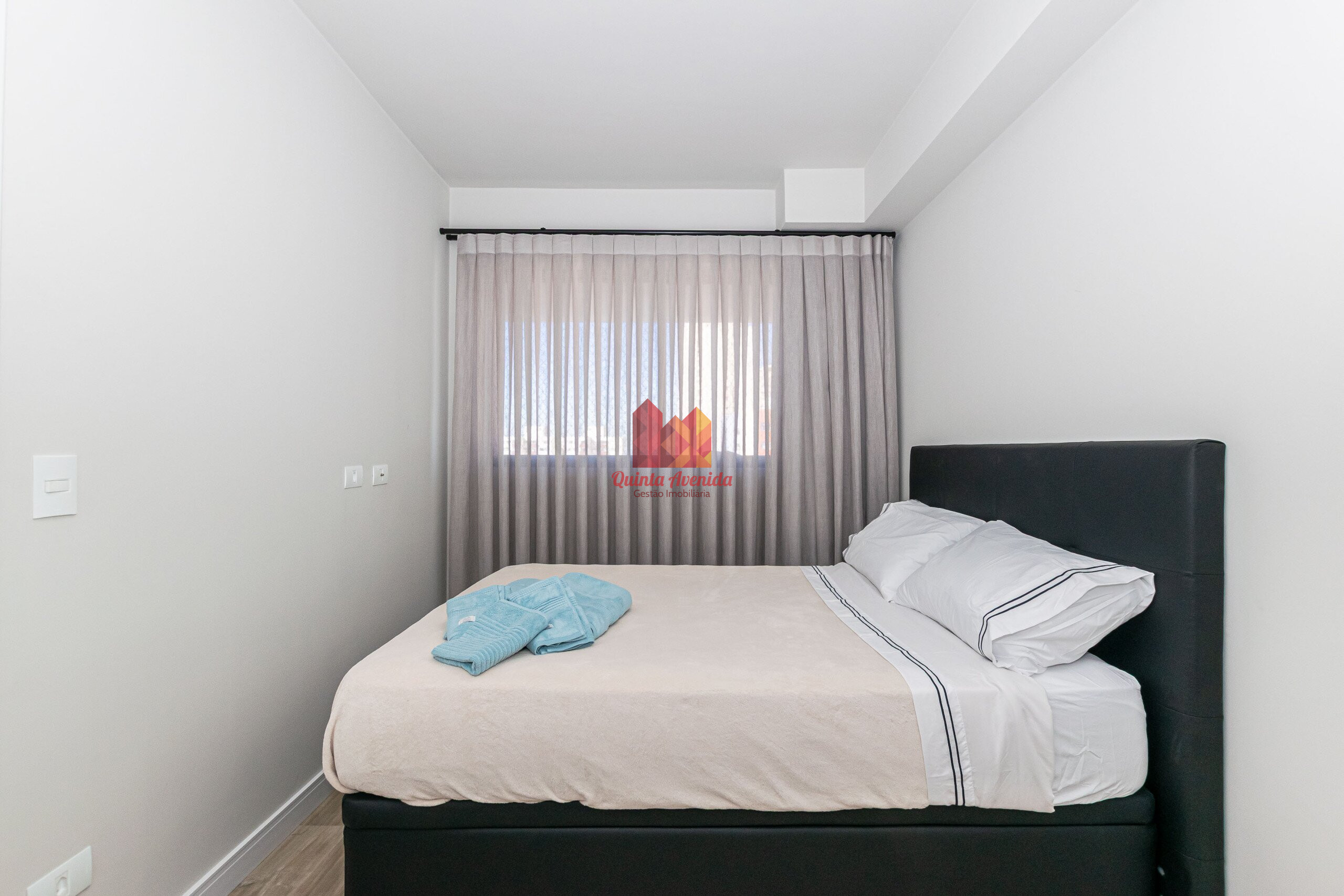 - Dormitório com cama e cortina;