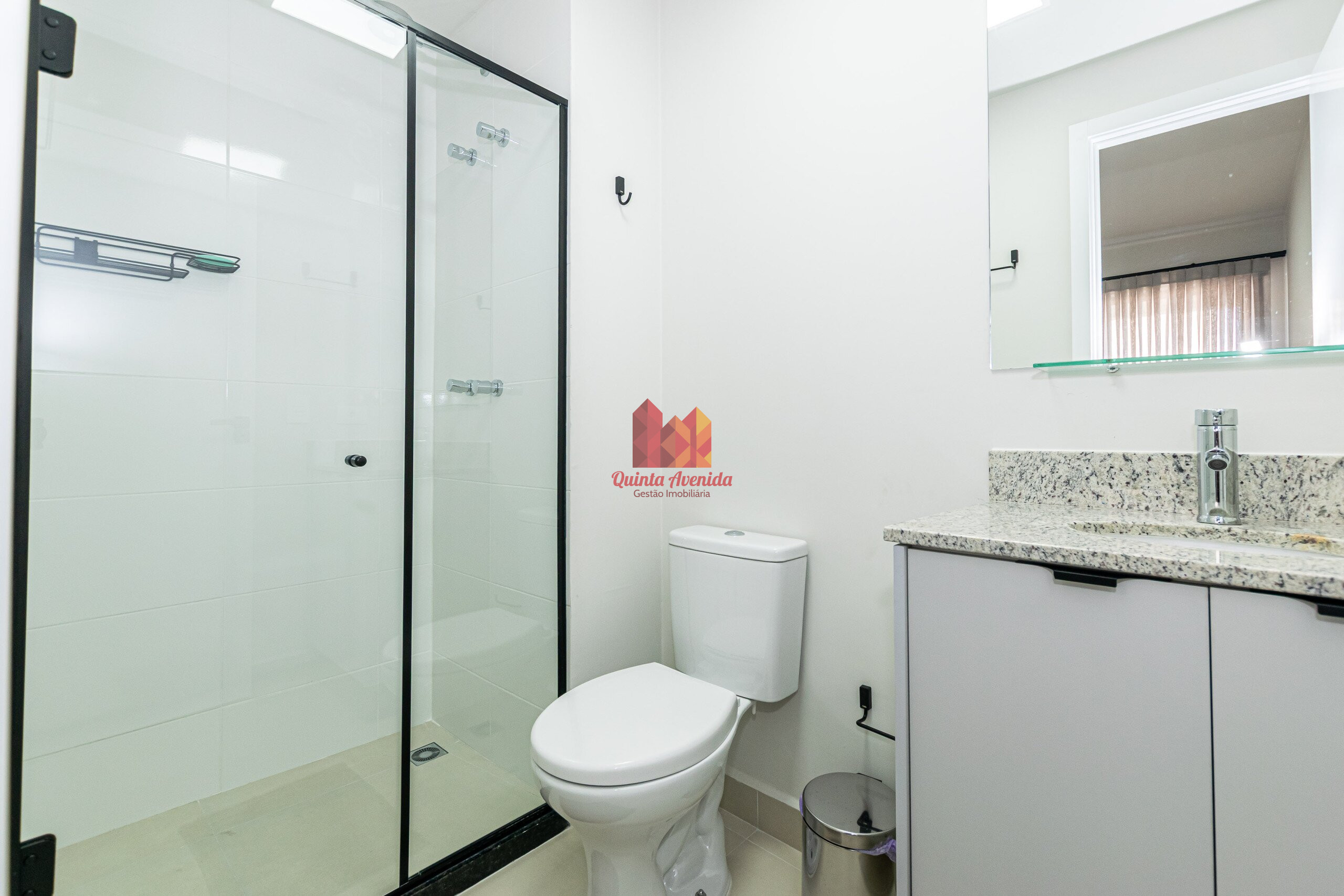 - Banheiro com box e bancada em granito;