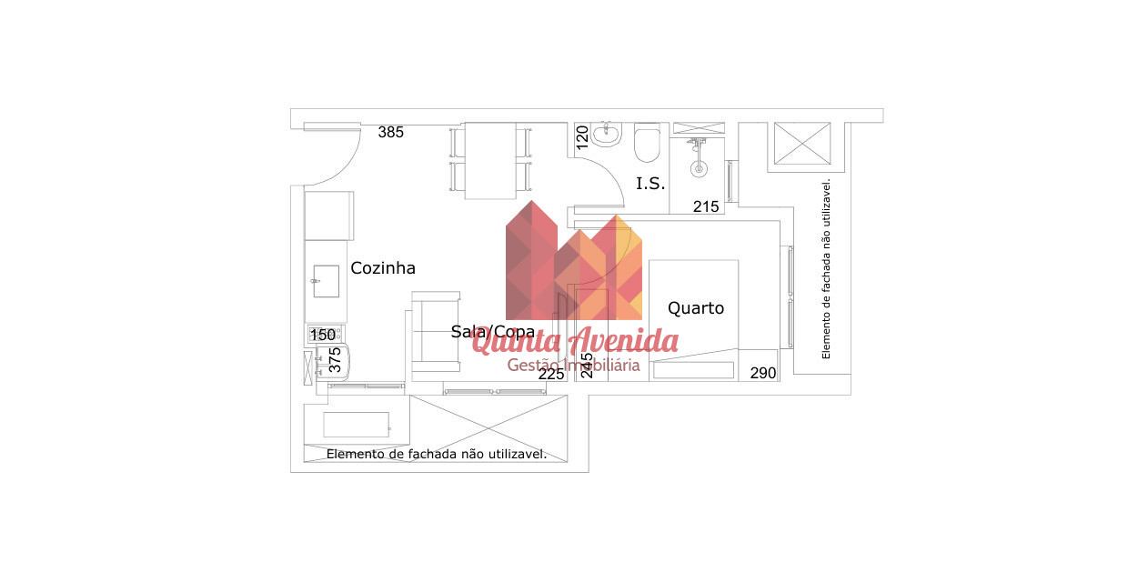 - Piso porcelanato nas áreas úmidas (cozinha e banheiro)