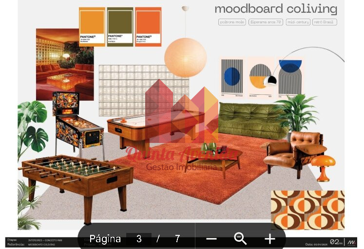 Arquitetura inspirada no modernismo anos 60/70, com linhas puras, brises e identidade marcante, integrada a áreas externas como bosque central e percursos elevados.