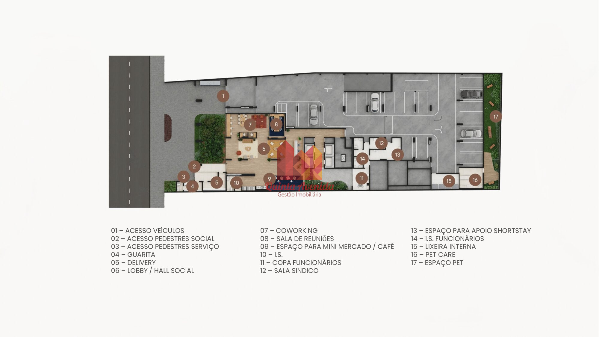 A estrutura do edifício contará com: