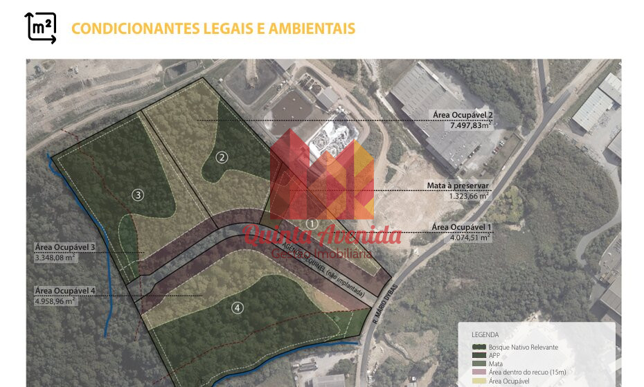 TERRENO À VENDA – (área 1) 6.500m² | CIDADE INDUSTRIAL - Testada rua principal 25,88m, lado direito 160m, lado esquerdo 141,26m, fundos 68,31m.